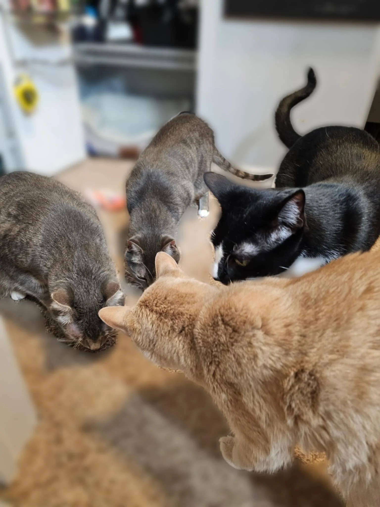 Larger groups: 3 or more cats that all need separate feeding, especially with wet food. Could be one needs to be locked up for their diet, bowls need to be cleaned from wet food, multiple litters, and still the desire to interact with at least some of them.